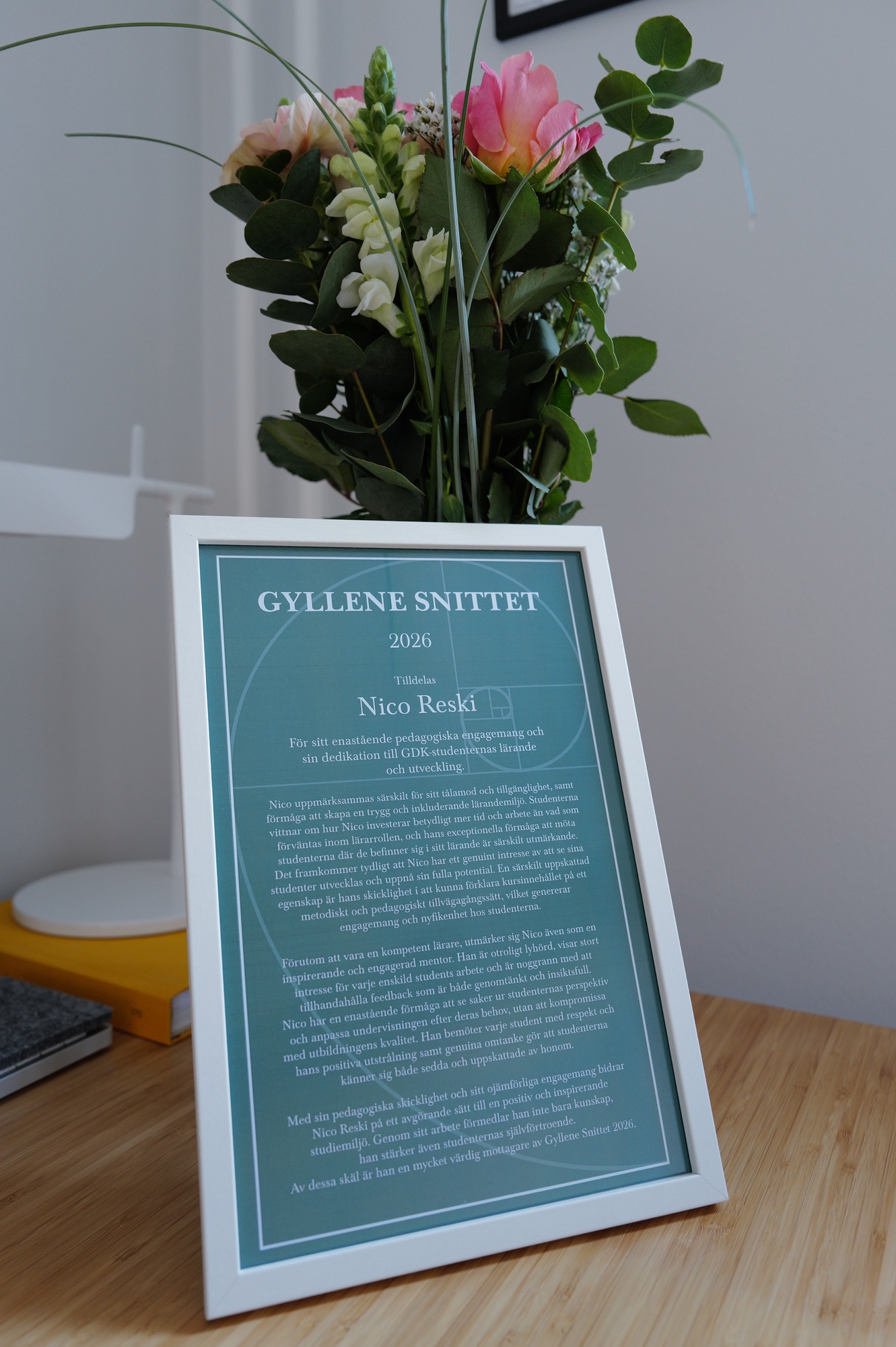 Recipient of the teacher award, issued by the students of the B.Sc. programme in Grafisk Design och Kommunikation (GDK) at Linköping University.